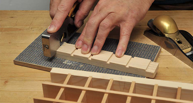 ショルダープレーンは日本の際ガンナ(きわがんな)や作里ガンナ(しゃくりがんな)に似ています。刃がカンナ本体の幅まであるため、材の入隅(いりすみ=縦と横の面が出会う内側の箇所)まで刃が届きます。用途は溝、段欠き、ホゾ先加工などに適しています。作品製作中のある場面でどうしてもこのカンナが必要になることがあります。欠かせない1台です。ベッドアングルは18°、刃のしのぎ角は25°なので仕込み角は43°のベベルアッププレーンです。刃幅はカンナ本体より0.1ミリほど広くなっています。材の入隅に確実に刃を当て、削るためです。