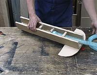 ビデオで紹介されているスタンド形状は簡単に製作できるよう、4枚の板で製作する方法です。4枚全て同寸で、追い回し継ぎによる箱形状です。